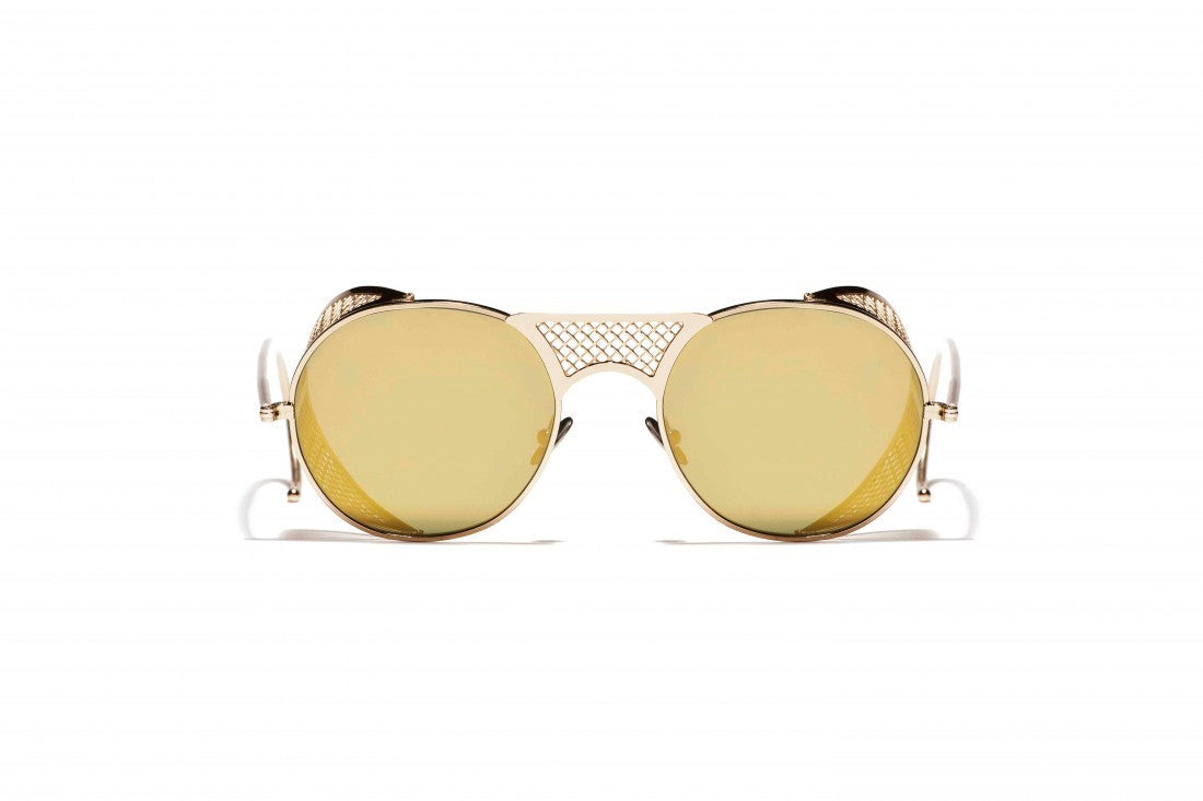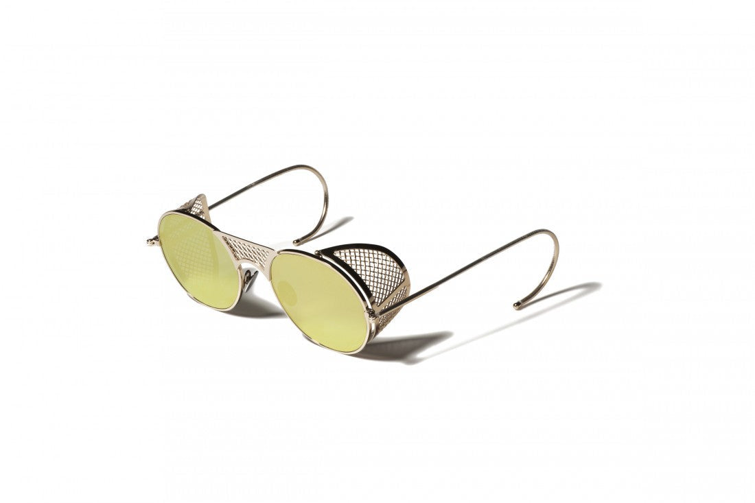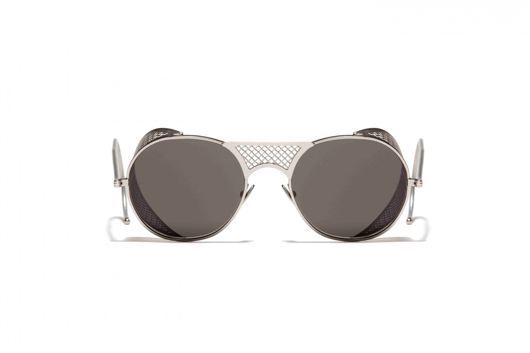 An epic tailor made frame for the true explorer, these sunglasses are entirely made of stainless steel with foldable flaps on each side created in a net like texture, and feature flat "Zero Base" lenses. Inspired by the harsh environments of the Arabian Deserts, this style is ideal for those venturing into the unknown. Lawrence is best suited for those who are adventurous in style and life. This special frame is completely foldable and comes with a unique leather case.